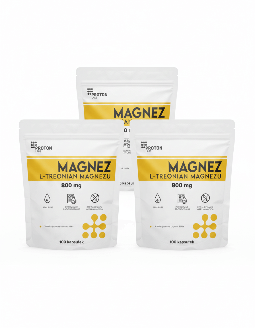 ✔️ 3 kapsułki zawierają 2400 mg L-treonianu magnezu (w tym aż 187 mg jonów magnezu).
